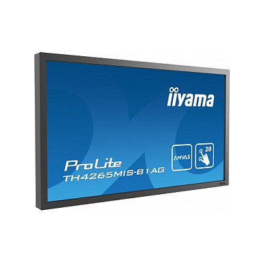 "iiyama ProLite TH4265MIS-B1AG. Display diagonal: 106.7 cm (42""), Display resolution: 1920 x 1080 pixels, HD type: Full HD, Display technology: LED, Response time: 6.5 ms, Native aspect ratio: 16:9, Viewing angle, horizontal: 178°, Viewing angle, vertical: 178°. Built-in speaker(s). VESA mounting. Product colour: Black"\n"42” Full HD professional 20pt touchscreen featuring daisy chain support