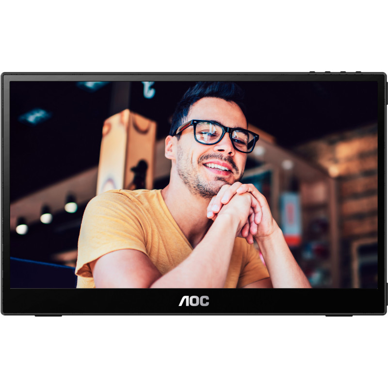 "AOC 16T3EA. Display diagonal: 39.6 cm (15.6""), Display resolution: 1920 x 1080 pixels, HD type: Full HD. USB port type: USB Type-C, USB version: 3.2 Gen 1 (3.1 Gen 1), Headphone connectivity: 3.5 mm. Product colour: Black, Panel mounting interface: 50 x 50 mm, Tilt angle range: 5 - 25°. On Screen Display (OSD) languages: Simplified Chinese, Traditional Chinese, Czech, Dutch, English, Finnish, French, German, Italian,.... Power consumption (typical): 7 W, Energy efficiency class (SDR): C, Energy consumption (SDR) per 1000 hours: 7 kWh"\n"Achieve freedom with the 16T3EA 15.6"" Full HD portable monitor, 1920x1080 resolution, USB-C Power, and Autopivot feature
