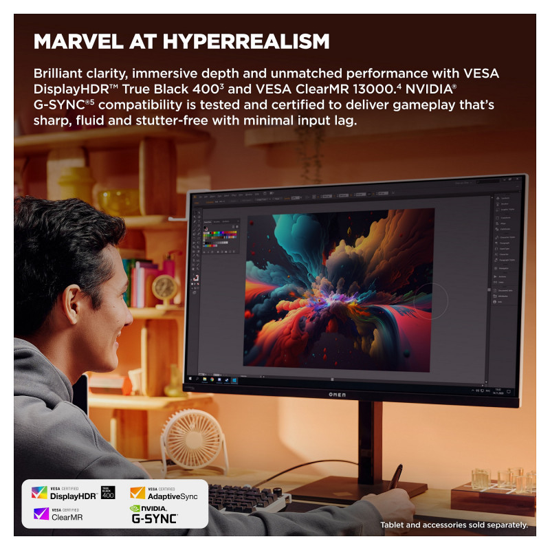 Experience amazing visuals and ultrafast gameplay with the OMEN Transcend 32 OLED Gaming Monitor. Play and create like never before with a QD-OLED, 4K UHD[2], color accurate display that offers a 240 Hz refresh rate[1] and .03ms response time. USB-C with 140W power delivery and OMEN Gear Switch enables you to seamlessly flow between gaming and working, making this a gamer's best friend and a boss's worst nightmare."