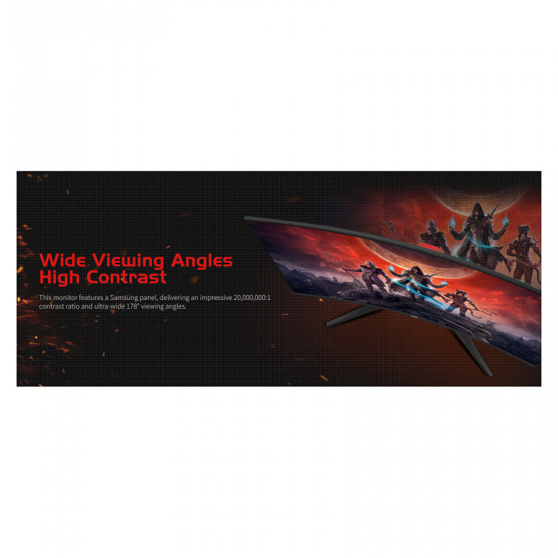 "Koorui G3221SC. Display diagonal: 80 cm (31.5""), Display resolution: 2560 x 1440 pixels, HD type: Quad HD, Response time: 1 ms, Native aspect ratio: 16:9, Viewing angle, horizontal: 178°, Viewing angle, vertical: 178°. VESA mounting. Product colour: Black"\n