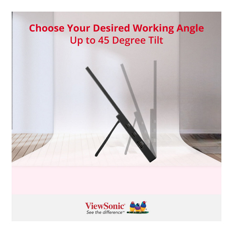 Easily adjust the screen viewing angle with the built-in foldable stand, featuring a durable hinge that can tilt up to 45 degrees.