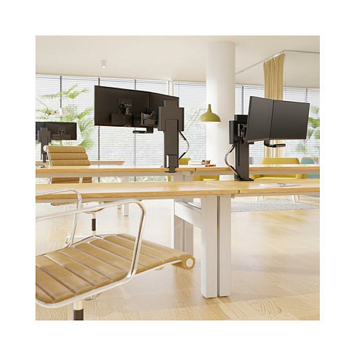 "Ergotron TRACE 45-631-224. Mounting: Clamp, Maximum weight capacity: 9.8 kg, Maximum screen size: 68.6 cm (27""), Minimum VESA mount: 75 x 75 mm, Maximum VESA mount: 100 x 100 mm. Height adjustment. Product colour: Black"\n"The innovative TRACE Dual Monitor Mount adapts to how each user works and feels their best to create ergonomic, flexible workspaces. It intuitively adjusts between tasks and postures to encourage movement and collaboration, always returning to the natural home position. The modular TRACE design and premium, 15-year warranty solidify a long-term investment.