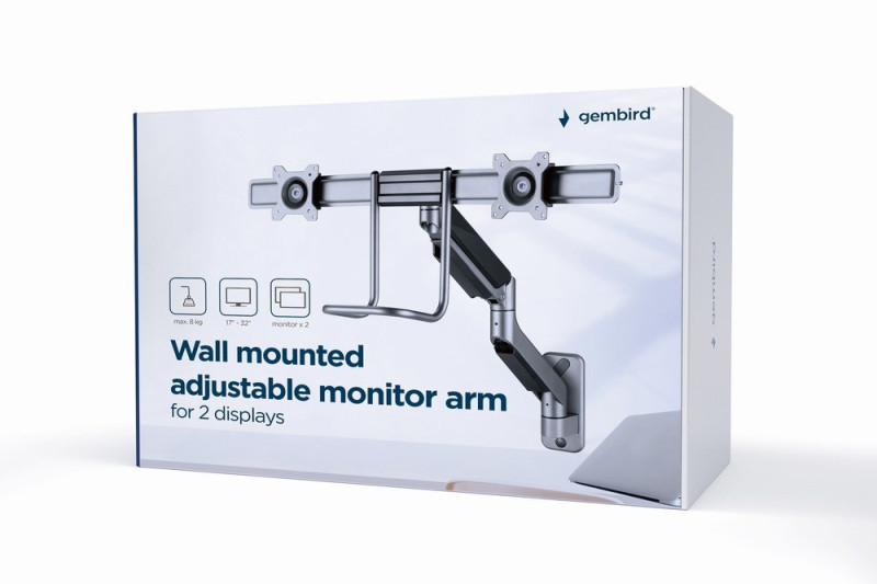 Monitorių Priedai | Gembird Laikiklis Adjustable wall 2-display mounting arm 17-32inch iki 8kg