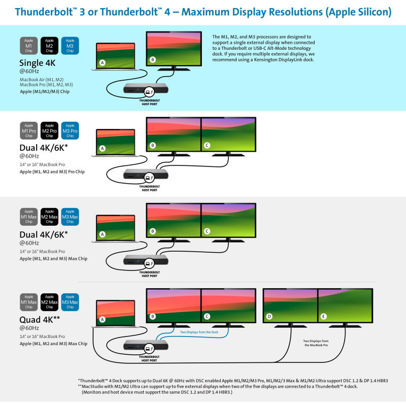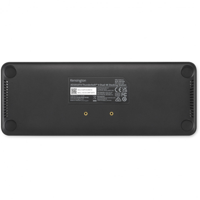 "Kensington SD5760T Thunderbolt 4 Dual 4K Docking Station with 96W Power Delivery. Connectivity technology: Wired, Host interface: Thunderbolt 4, USB Power Delivery up to: 96 W. Ethernet LAN data rates: 100,1000 Mbit/s. Product colour: Grey, Compatible memory cards: SD, MicroSD (TransFlash), Data transfer rate: 40 Gbit/s. Power source type: DC. Other operating systems supported: ChromeOS"\n"Ideal for busy professionals working in the home or office, the SD5760T Thunderbolt™ 4 Dual 4K Docking Station supports the latest MacBooks, Surface devices and other Thunderbolt™ 4 enabled laptops with everything you need to enhance your productivity today and well into the future. Providing a true plug-and-play experience with no drivers or downloads required, the SD5760T works with Windows and macOS, as well as Thunderbolt 4, Thunderbolt 3, USB4 and USB-C devices. Flexible port options include support for a Single 8K @ 60Hz (via front TB4 port) or Dual 4K @ 60Hz (via two HDMI ports or one TB4 port). Focused on productivity, the SD5760T supports up to 96W of Power Delivery, up to 40Gbps data transfer speeds, daisy chaining and includes 13 connectivity ports. Includes Kensington DockWorks™ Software and 3-year limited warranty."