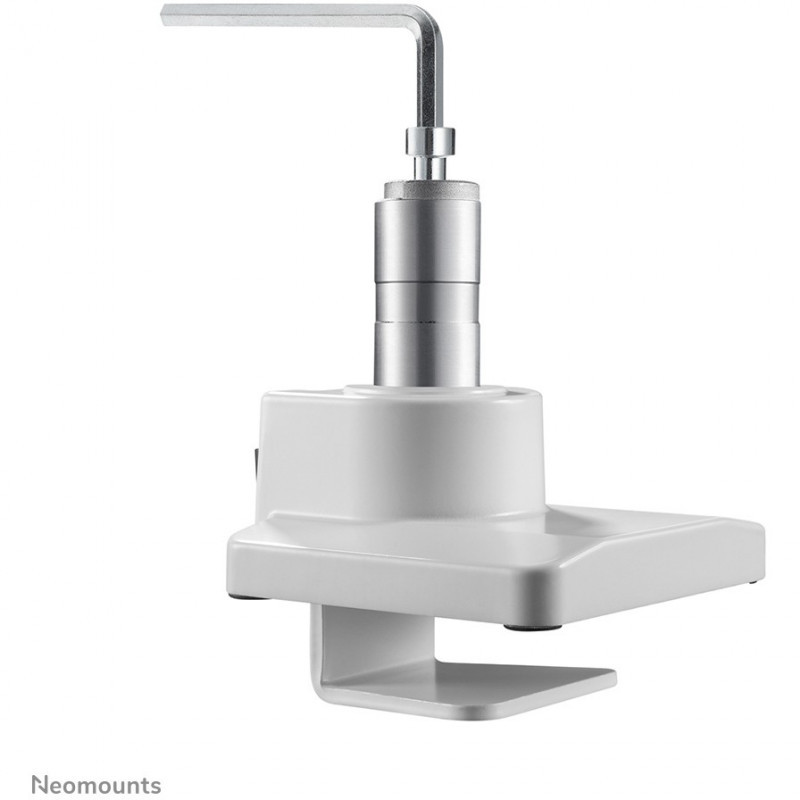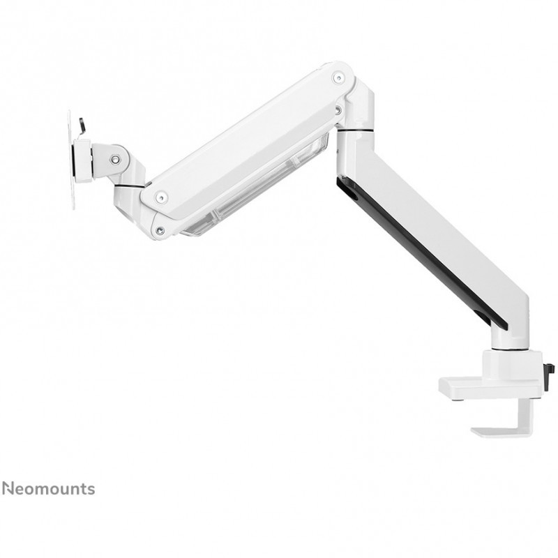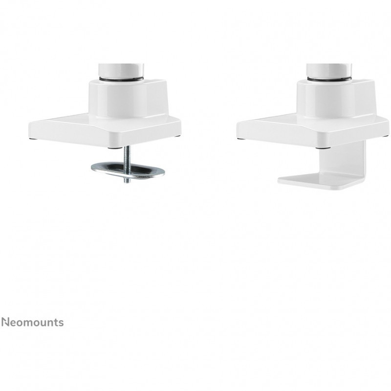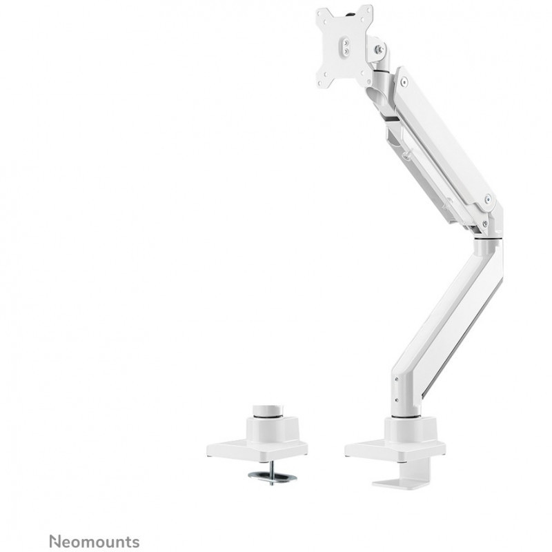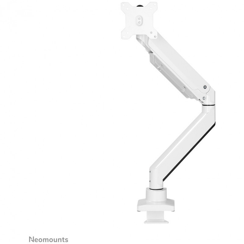 "Neomounts NM-D775WHITEPLUS Monitor arm 10-49"" - gas spring - Topfix - 180°-stop. Mounting: Clamp/Grommet, Maximum weight capacity: 18 kg, Minimum screen size: 25.4 cm (10""), Maximum screen size: 124.5 cm (49""), Minimum VESA mount: 75 x 75 mm, Maximum VESA mount: 100 x 100 mm. Height adjustment, Tilt angle range: -45 - 45°. Product colour: White"\n"The Neomounts NM-D775WHITEPLUS is a tilt-, swivel and rotatable desk mount for curved screens up to 49"". This mount is a great choice for space saving placement on desks using a top-fix desk clamp or grommet mount.