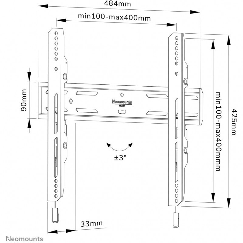 "Neomounts WL30S-850BL14 TV mount wall 32-75"" - fixed - lockable - fast installation. Maximum weight capacity: 50 kg, Minimum screen size: 81.3 cm (32""), Maximum screen size: 190.5 cm (75""), Minimum VESA mount: 100 x 100 mm, Maximum VESA mount: 400 x 400 mm. Height adjustment range: 0 - 20 mm, Distance to the wall (max): 3.3 cm. Product colour: Black"\n"The Neomounts WL30S-850BL14 LEVEL is a fixed wall mount for flat screens up to 75"" with a maximum weight capacity of 50 kg. Height and level adjustment is available for the perfect installation.