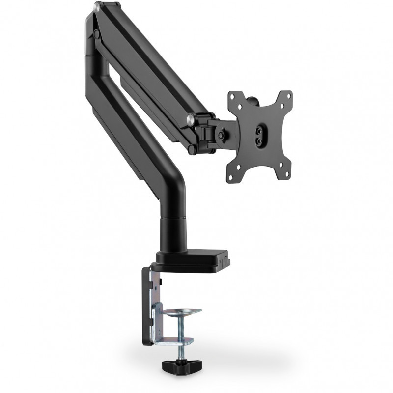 "Digitus Single monitor mount, 32"", 9 kg. Mounting: Clamp, Maximum weight capacity: 9 kg, Minimum screen size: 38.1 cm (15""), Maximum screen size: 81.3 cm (32""), Minimum VESA mount: 75 x 75 mm, Maximum VESA mount: 100 x 100 mm. Height adjustment. Product colour: Black"\n"The desktop mount offers you the option of individually aligning monitors from 15"" - 32"". The monitor can be swiveled, tilted and rotated. The integrated gas pressure spring makes height adjustment easy. With quick-release function.