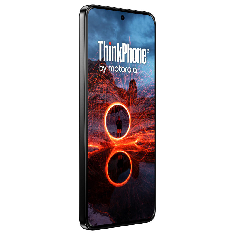 "Motorola ThinkPhone25 . Display diagonal: 16.1 cm (6.36""), Display resolution: 2670 x 1220 pixels. Processor family: MediaTek, Processor model: 7300. RAM capacity: 8 GB, RAM type: LPDDR4X, Internal storage capacity: 256 GB. Rear camera resolution (numeric): 50 MP, Rear camera type: Triple camera. SIM card capability: Dual SIM. Operating system installed: Android 14. Battery capacity: 4310 mAh. Product colour: Black. Weight: 169 g"\n"Thinking ahead