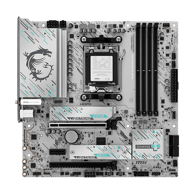 The B850M GAMING PLUS WIFI is crafted to offer extensive connectivity, versatile tools, and a premium Wi-Fi solution for gamers seeking a comprehensive experience. Featuring the latest Wi-Fi 7, 5G LAN, PCIe 5.0 solution, Supplemental PCIe Power and exclusive EZ DIY features, it is ready for 24/7 non-stop gaming optimized for AMD Ryzen™ 9000 series processors.
