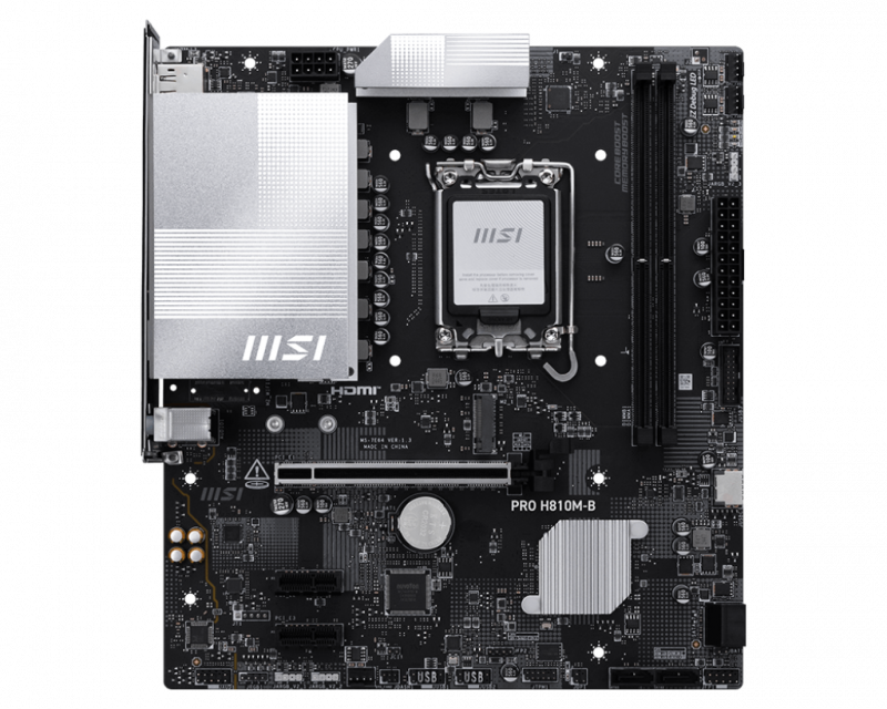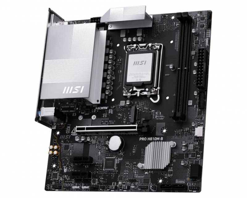 MSI PRO H810M-B | Processor family Intel H810 | Processor socket LGA1851 | DDR5 | Supported hard disk drive interfaces SATA, M.2 | Number of SATA connectors 4