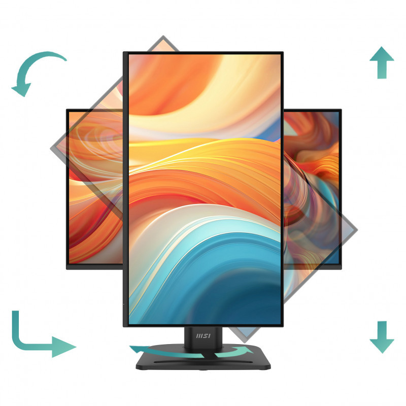 "MSI Pro MP245PHG E14. Display diagonal: 60.5 cm (23.8""), Display resolution: 1920 x 1080 pixels, HD type: Full HD, Display technology: LCD, Response time: 4 ms, Native aspect ratio: 16:9, Viewing angle, horizontal: 178°, Viewing angle, vertical: 178°. Built-in speaker(s). Built-in USB hub, USB hub version: 2.0 / 3.2 Gen 1 (3.1 Gen 1). VESA mounting, Height adjustment. Product colour: Black"\n"The Slim, Sleek and Smooth 144Hz Business Monitor