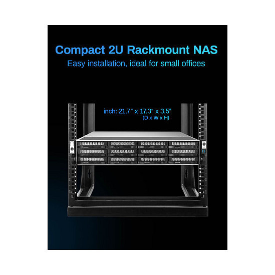 20Gb Lightning-Fast Throughput: The U12-500 Plus NAS server features dual 10GbE Ethernet ports, offering up to 20Gbps bandwidth. With SMB multichannel support, it achieves up to 2090MB/s sequential write speeds and 450MB/s 4K random read/write speeds. This performance ensures seamless image and video handling, making it perfect for film production, post-production, and high-demand virtualized environments.
