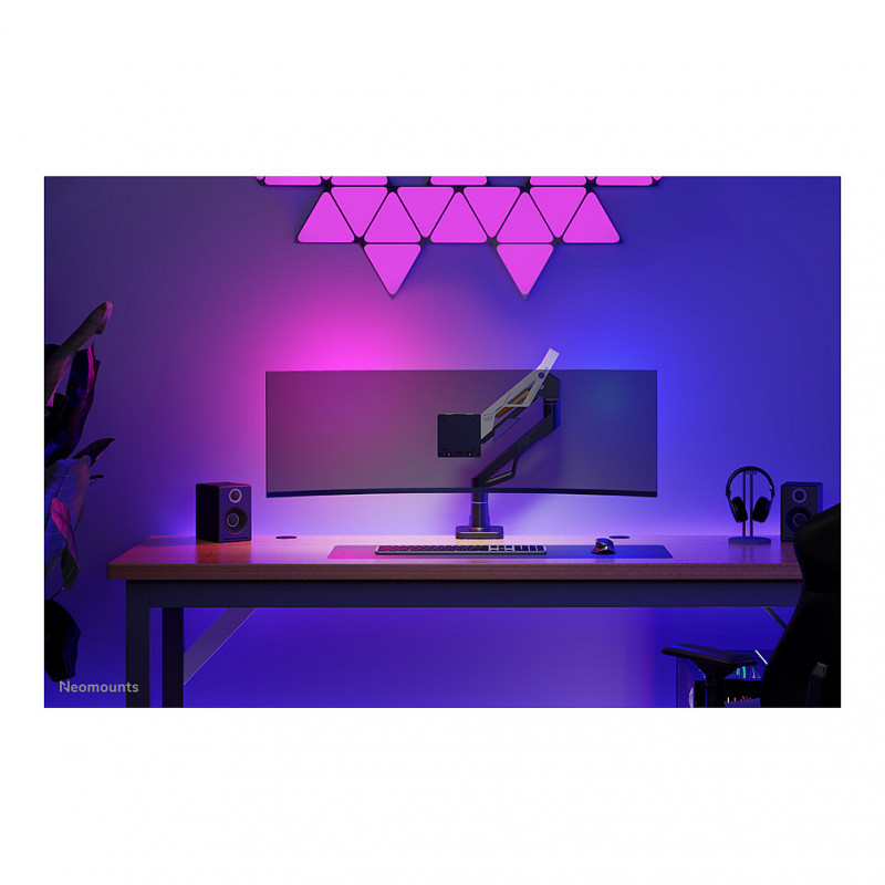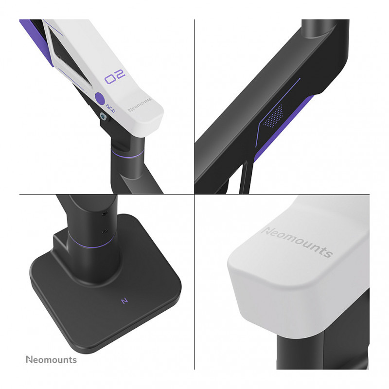 "Neomounts DS70-256BL1 Gaming monitor arm 24-57"" - gas spring - Topfix - 180°-stop. Mounting: Clamp/Grommet, Maximum weight capacity: 30 kg, Minimum screen size: 61 cm (24""), Maximum screen size: 144.8 cm (57""), Minimum VESA mount: 75 x 75 mm, Maximum VESA mount: 200 x 200 mm. Height adjustment, Swivel angle range: -90 - 90°, Tilt angle range: -45 - 70°. Product colour: Black"\n"The Neomounts DS70-256BL1 ACE delivers exceptional performance and ergonomic comfort for gamers that want to take their setup to the highest level. Supporting screen sizes up to an impressive 57"", including extra-wide models like the Samsung Odyssey G9, this arm is built to handle the most ambitious set-ups. With a heavy-duty weight capacity ranging from 2 to 30 kg (and up to 24 kg for curved monitors), it ensures maximum stability even during intense gaming sessions.