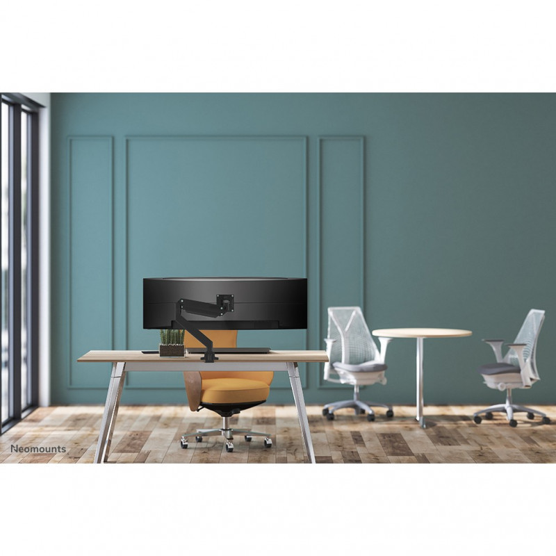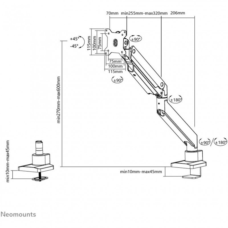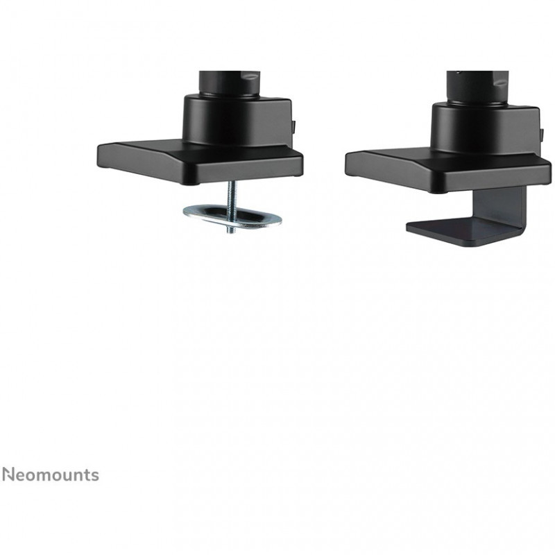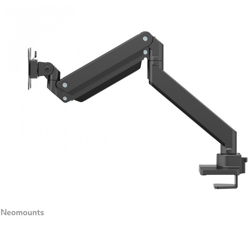 "Neomounts NM-D775BLACKPLUS Monitor arm 10-49"" - gas spring - Topfix - 180°-stop. Mounting: Clamp/Grommet, Maximum weight capacity: 18 kg, Minimum screen size: 25.4 cm (10""), Maximum screen size: 124.5 cm (49""), Minimum VESA mount: 75 x 75 mm, Maximum VESA mount: 100 x 100 mm. Height adjustment, Tilt angle range: -45 - 45°. Product colour: Black"\n"The Neomounts NM-D775BLACKPLUS is a tilt-, swivel and rotatable desk mount for curved screens up to 49"". This mount is a great choice for space saving placement on desks using a top-fix desk clamp or grommet mount.