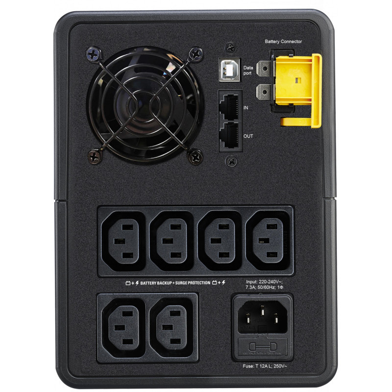 "APC Back-UPS, 1600VA, Tower, 230V, 6x IEC C13 outlets, AVR. UPS topology: Line-Interactive, Output power capacity: 1.6 kVA, Output power: 900 W. AC outlet types: C13 coupler, Power plug: C13 coupler, AC outlets quantity: 6 AC outlet(s). Battery technology: Sealed Lead Acid (VRLA), Battery capacity: 7 Ah, Battery voltage: 24 V. Form factor: Compact, Product colour: Black, Cable length: 1.2 m. Compliance certificates: RoHS, Certification: CB Meet EN62040-1 / CE / IEC-62040-1 / IEC-62040-2"\n"This APC Back-UPS offers power and surge protection for wireless networks, computers, gaming consoles and other electronics in your home or business. The 1600VA tower UPS has 6 total outlets, 4 of which are battery back up and surge protection, and 2 that are surge protection only. It has a surge energy rating of 273 Joules. It features Automatic Voltage Regulation to correct voltage dips and surges to proper levels. This UPS has a 2-year warranty and CE product certification."