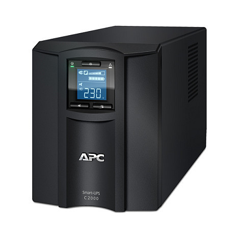 "APC Smart-UPS C, Line Interactive, 2000VA, Tower, 230V, 6x IEC C13+1x IEC C19 outlets, USB and Serial communication, AVR, Graphic LCD. UPS topology: Line-Interactive, Output power capacity: 2 kVA, Output power: 1300 W. AC outlet types: C13 coupler, C19 coupler, C20 coupler, AC outlets quantity: 7 AC outlet(s). Battery technology: Sealed Lead Acid (VRLA), Battery capacity: 499 VAh, Battery life (max): 5 year(s). Form factor: Compact, Product colour: Black, Display type: LCD. Compliance certificates: RoHS, Certification: C-tick, CE, GOST, SABS, VDE, REACH"\n"This APC Smart-UPS is designed for small to medium business users to maintain business uptime and continuity. This 2000VA line interactive tower UPS provides pure sine wave power to support critical electronics during power disruptions. The UPS comes with IEC 320 C20 input, 6x IEC 320 C13 and 1x IEC 320 C19 outlets. The Smart-UPS C has an intuitive graphic LCD interface. This UPS has built-in lead-acid battery and is covered by a 2-year UPS warranty. This line interactive UPS operates in green mode for high operating efficiency. The SMC has built-in lead-acid battery and is covered by a 2-year UPS warranty. This UPS provides surge protection against lightning strikes, power sags, brownouts and surges. This is compatible with a dedicated user-replaceable battery, and the APC replacement battery cartridge helps restore UPS performance to the original specifications."
