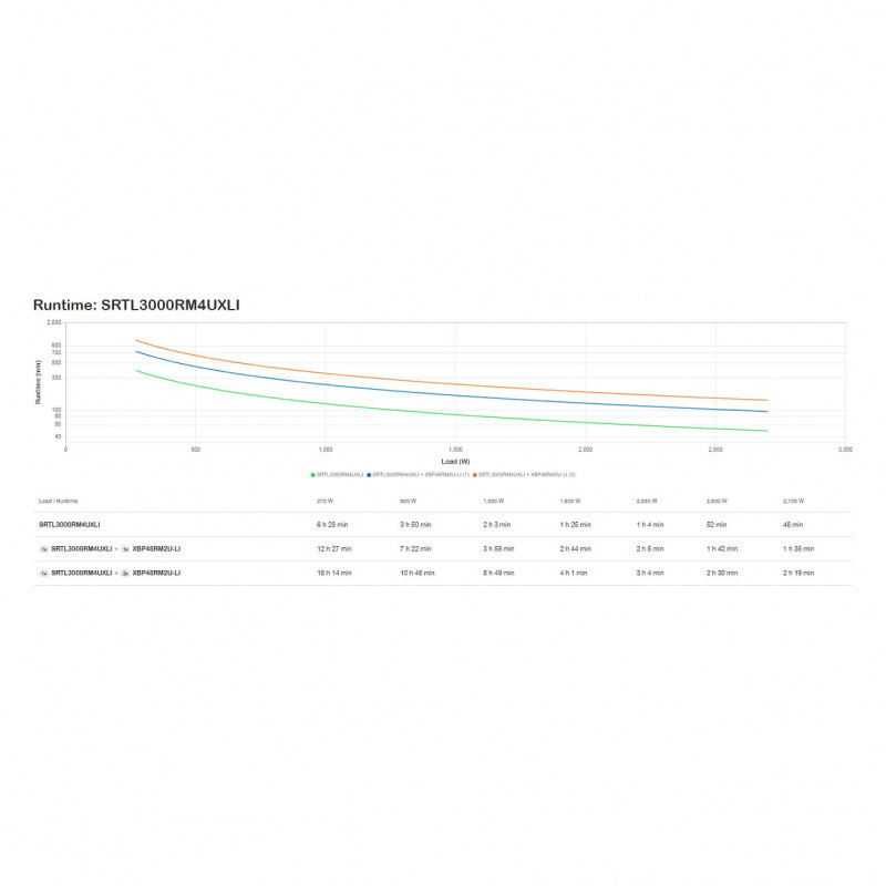 "APC Smart-UPS On-Line, 3kVA, Lithium-ion, Rackmount 4U, 230V, 6x C13+2x C19 IEC outlets, SmartSlot, Extended long runtime, Rail kit included. UPS topology: Double-conversion (Online), Output power capacity: 3 kVA, Output power: 2700 W. AC outlet types: C13 coupler, C19 coupler, AC outlets quantity: 8 AC outlet(s). Battery technology: Lithium-Ion (Li-Ion), Battery voltage: 48 V, Battery life (max): 10 year(s). Form factor: Rackmount/Tower, Product colour: Black, Silver, Rack capacity: 4U. Sustainability certificates: Green Premium"\n"At 2700W/3000VA this Smart-UPS On-Line Lithium-Ion battery backup system provides high-density, double conversion on-line pure sine wave power. In addition to cleaner, quieter power protection, this UPS is only around half size and weight of comparable UPS systems with similar runtime and has flexible rack and tower installation options. A new extended runtime battery pack provides longer runtime in a small 2U footprint while tripling the life expectancy of the UPS. SRTL 1-3kVA UPSs with this rong runtime battery pack is perfect for applications critical for runtime."