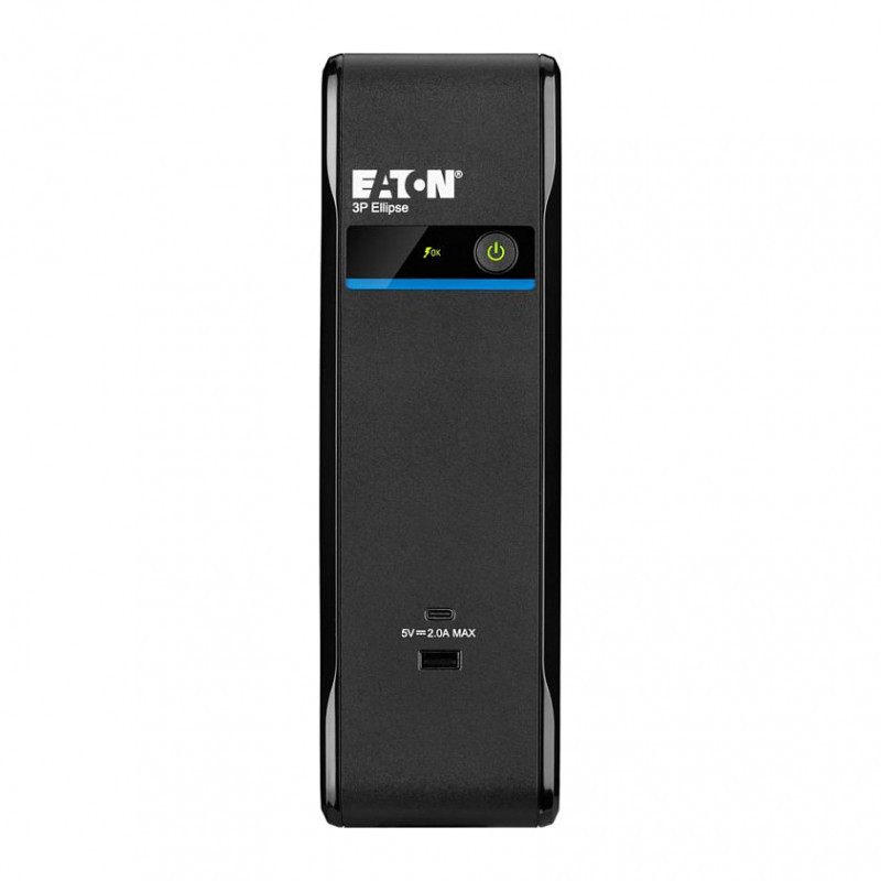 "Eaton 3P900UI. UPS topology: Standby (Offline), Output power capacity: 0.9 kVA, Output power: 540 W. AC outlet types: C3 coupler, AC outlets quantity: 4 AC outlet(s), USB port type: USB Type A/USB Type-C. Battery capacity: 9 Ah, Battery voltage: 12 V. Form factor: Tower, Product colour: Black, Display type: LED. Compliance certificates: CB, CE, RoHS, WEEE, Certification: IEC/EN 62040-1 IEC/EN 62040-2 IEC/EN 62040-3 CE UKCA Ukr Cm"\n