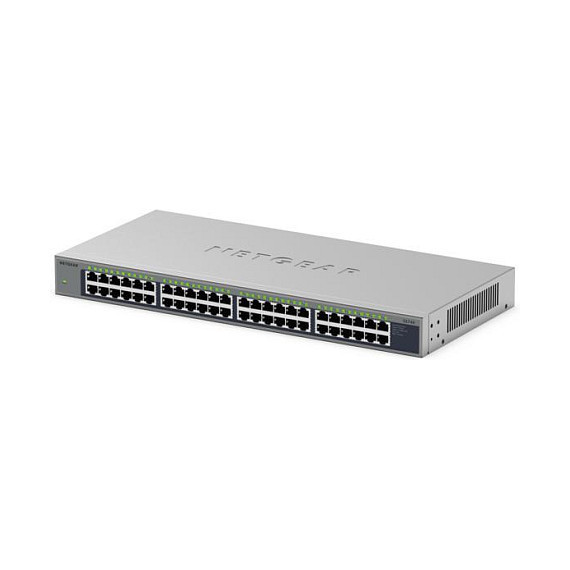 "NETGEAR GS748. Switch type: Unmanaged. Basic switching RJ-45 Ethernet ports type: Gigabit Ethernet (10/100/1000), Basic switching RJ-45 Ethernet ports quantity: 48. Full duplex. MAC address table: 8000 entries. Networking standards: IEEE 802.1p, IEEE 802.3az. Rack mounting"\n"PLUG-AND-PLAY