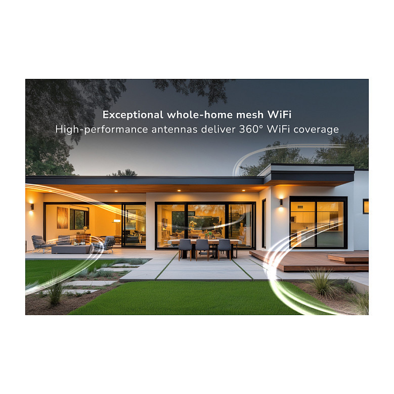 Powerful mesh system with high-performance antennas delivers 360° WiFi coverage – built for whole-home connectivity