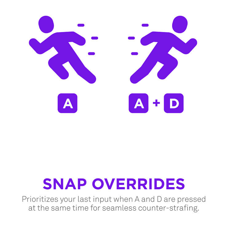 - Enhanced Gameplay: Rapid Trigger resets keys instantly as they travel upward for ultra-fast repeated presses, and Snap Overrides prioritizes your last input between A and D for seamless counter-strafing.