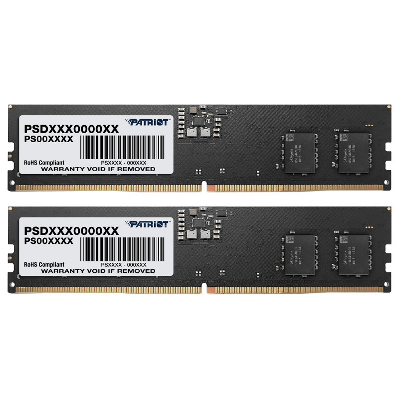 "Patriot Memory Signature Line Premium Patriot. Component for: PC/Server, Internal memory: 16 GB, Memory layout (modules x size): 1 x 16 GB, Internal memory type: DDR5, Memory clock speed: 5600 MHz, Memory form factor: 288-pin DIMM, CAS latency: 46"\n"SIGNATURE LINE DDR5