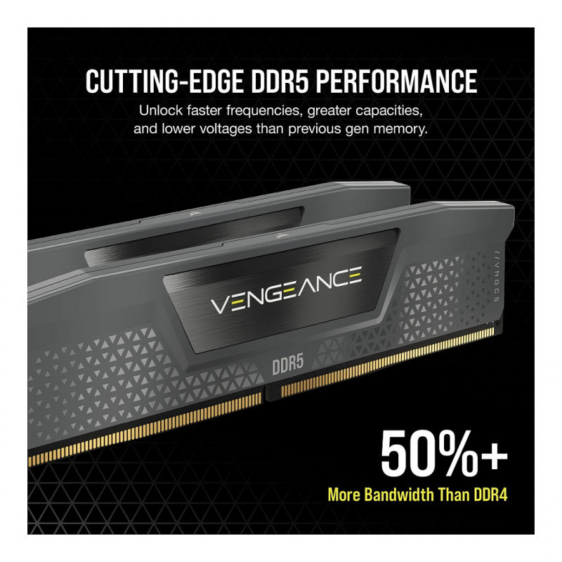 "Corsair Vengeance CMK32GX5M2B6400Z32. Component for: PC, Internal memory: 32 GB, Memory layout (modules x size): 2 x 16 GB, Internal memory type: DDR5, Memory clock speed: 4800 MHz, Memory form factor: 288-pin DIMM, CAS latency: 32, Product colour: Black"\n"VENGEANCE DDR5