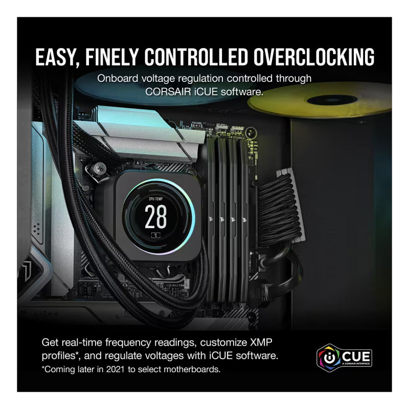 You have the power and the control. Built-in voltage regulation with iCUE software control makes for easier, finely-tuned output that provides more stable overclocking than ever.