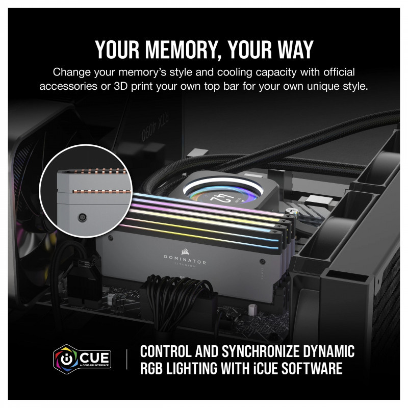 Change your memory's style and cooling capabilities with official accessories or 3D print your own top bars for a totally unique aesthetic.