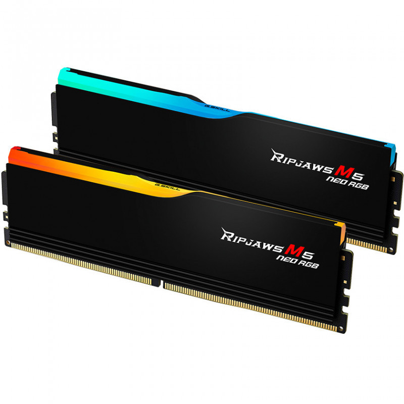 Ripjaws M5 Neo RGB is a performance DDR5 DRAM memory series designed for AMD AM5 platforms. Featuring matte black or matte white aluminum heatspreaders and customizable RGB lighting, the Ripjaws M5 Neo RGB is the ideal memory kit for a wide variety of PC builds and themes.