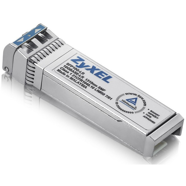 "Zyxel SFP10G-LR. SFP transceiver type: Fiber optic, Maximum data transfer rate: 10000 Mbit/s, Interface type: SFP+. Width: 14.8 mm, Depth: 56.5 mm, Height: 11.8 mm. Quantity per pack: 1 pc(s)"\n"- Hot-Pluggable with Maximum Flexibility