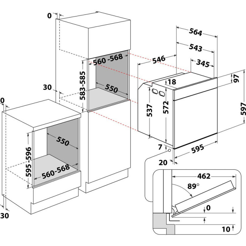 • Standartiniai matmenys (plotis 59.5 cm, aukštis 59.7 cm, gylis 56.4 cm) — paprasta montuoti virtualiai bet kurioje 60 cm nišoje
