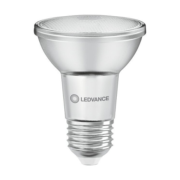 "Osram LED PAR20 DIM P. Bulb power: 6.4 W, Equivalent bulb power: 50 W, Fitting/cap type: E27, Luminous flux: 350 lm, Bulb lifetime: 25000 h, Light colour: Warm white, Colour temperature: 2700 K, Beam angle (max): 36°, Color Rendering Index (CRI): 80, Power factor: 0.5"\n
