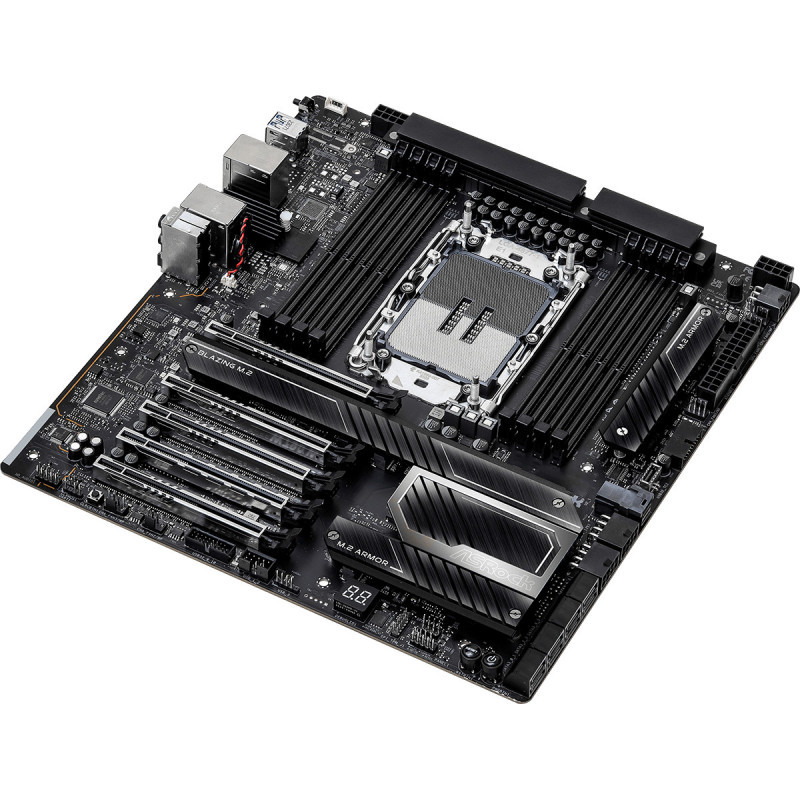This workstation motherboard supports 8 DIMMs Quad-Channel DDR5 RDIMM ECC Memory overclocking with max capacity of 2048GB and is able to automatically detected and corrected data corruption, reducing the chance of system crashes to ensure workstation stability with multiple memory modules.