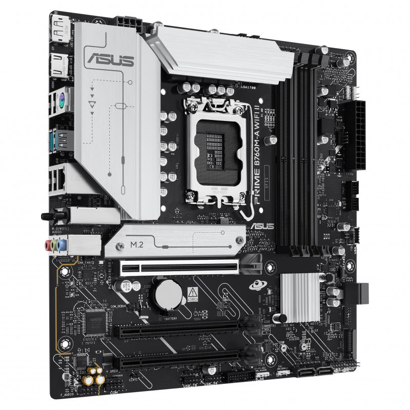 ASUS Prime series motherboards are expertly engineered to unleash the full potential of 14th Gen Intel® Core™ Processors. Boasting a robust power design, comprehensive cooling solutions and intelligent tuning options, PRIME B760M-A WIFI II provides users and PC DIY builders with a range of performance optimizations via intuitive software and firmware features. This platform delivers the power and connectivity that advanced AI PC applications demand."