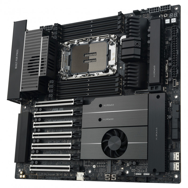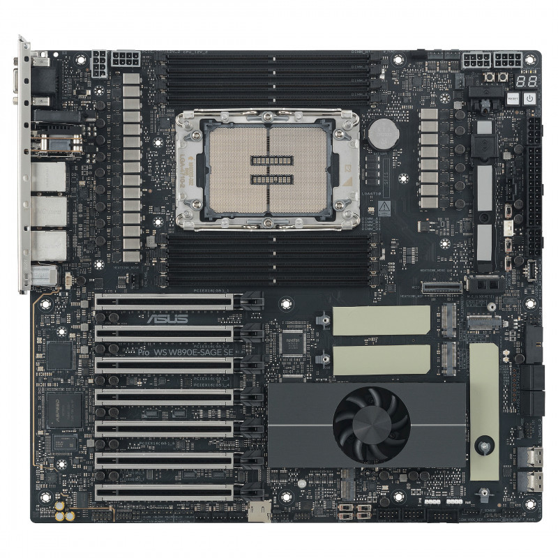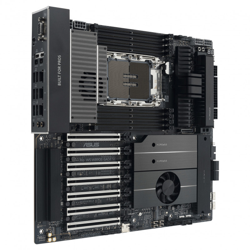 "ASUS Pro WS W890E-SAGE SE. Processor manufacturer: Intel, Processor socket: LGA 4710-2, Compatible processor series: Intel® Xeon®. Supported memory types: DDR5-SDRAM, Memory slots type: DIMM, Memory channels: Octa-channel. Supported storage drive interfaces: M.2, SATA III, SlimSAS, Supported storage drive types: HDD & SSD, RAID levels: 0, 5, 1, 10. Maximum resolution: 7680 x 4320 pixels. Ethernet interface type: 10 Gigabit Ethernet, Gigabit Ethernet"\n"The Pro WS W890E-SAGE SE workstation motherboard is deftly tailored for creative professionals, developers and engineers, unleashing the dominate performance of the latest Intel Xeon processors, with CPU and memory overclocking capability. Featuring an optimized memory trace layout, advanced power stage design, server-grade IPMI remote management, and ultrafast PCIe 5.0 and networking connectivity, Pro WS W890E-SAGE SE melds no-compromise engineering with incredible aesthetics, and comes prepared for a wide array of scenarios and industries.