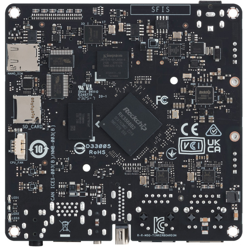 "ASUS Tinker Board 3N PLUS. Processor manufacturer: Rockchip, Processor model: Rockchip RK3568. Maximum internal memory: 4 GB, RAM capacity: 4096 MB, Flash memory type: eMMC. USB version: 2.0/3.2 Gen 1 (3.1 Gen 1). On-board graphics card model: Arm Mali-G52. Linux operating systems supported: Debian 11"\n"Achieving interoperability, scalability and reliability, ASUS IoT Tinker Board 3N PLUS single-board computers (SBCs) deliver Arm®-based power and versatility for embedded applications in NUC size.