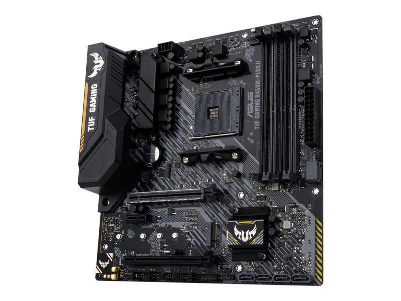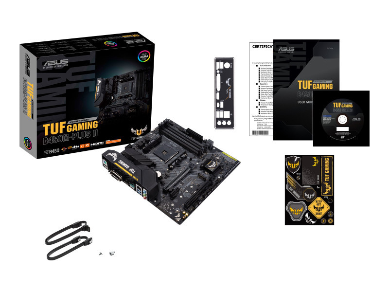 Asus | TUF GAMING B450M-PLUS II | Processor family AMD | Processor socket AM4 | DDR4 | Memory slots 4 | Number of SATA connectors 6 x SATA III | Chipset AMD B | Micro ATX