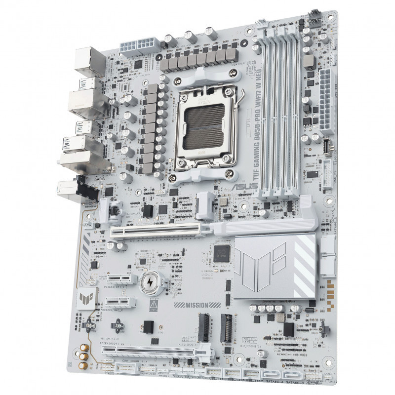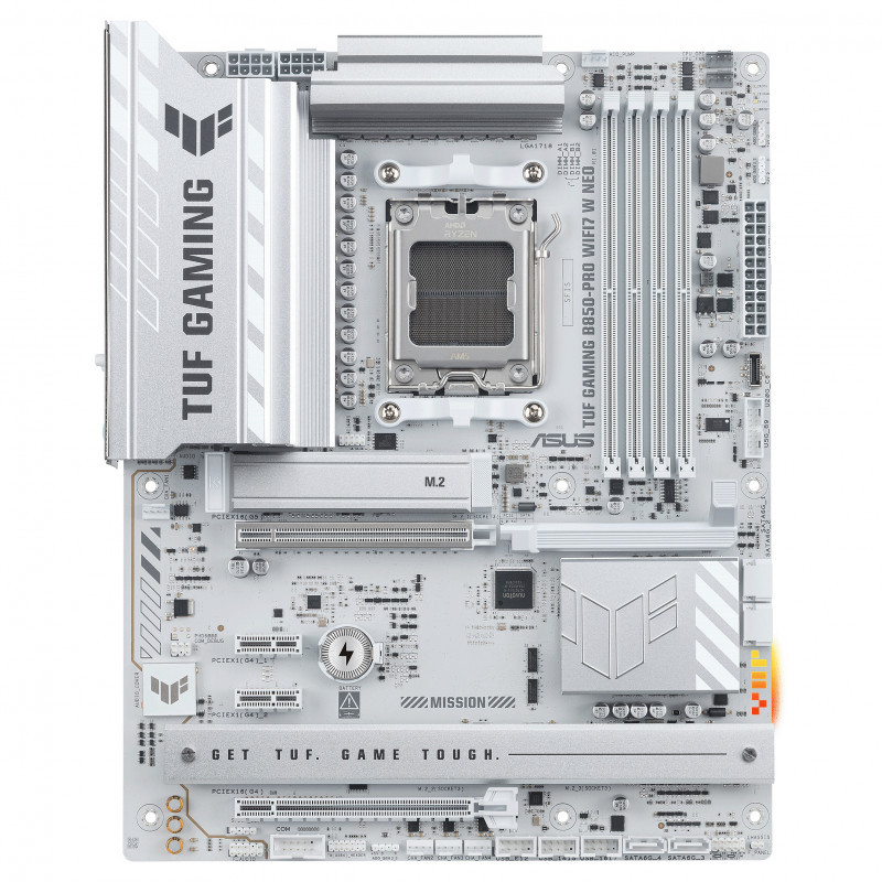 ASUS TUF GAMING B850-PRO WIFI7 W NEO takes all the essential elements of the latest AMD Ryzen™ processors and combines them with game-ready features and proven durability. Engineered with an upgraded power solution and a comprehensive cooling system, this motherboard goes beyond expectations with rock-solid and stable performance for marathon gaming. TUF GAMING motherboards also undergo rigorous endurance testing to ensure that they can handle conditions where others may fail. This platform delivers the power and connectivity that advanced AI PC applications demand."