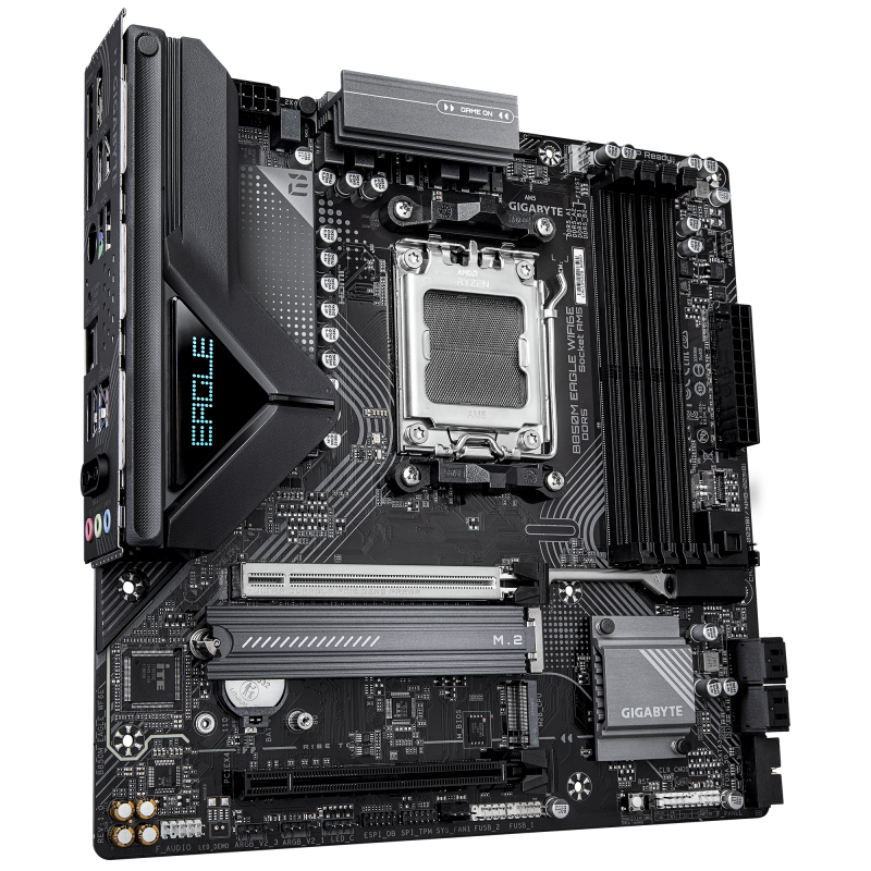 Gigabyte B850M EAGLE WF6E | Processor family AMD | Processor socket AM5 | DDR5 | Supported hard disk drive interfaces SATA, M.2 | Number of SATA connectors 4