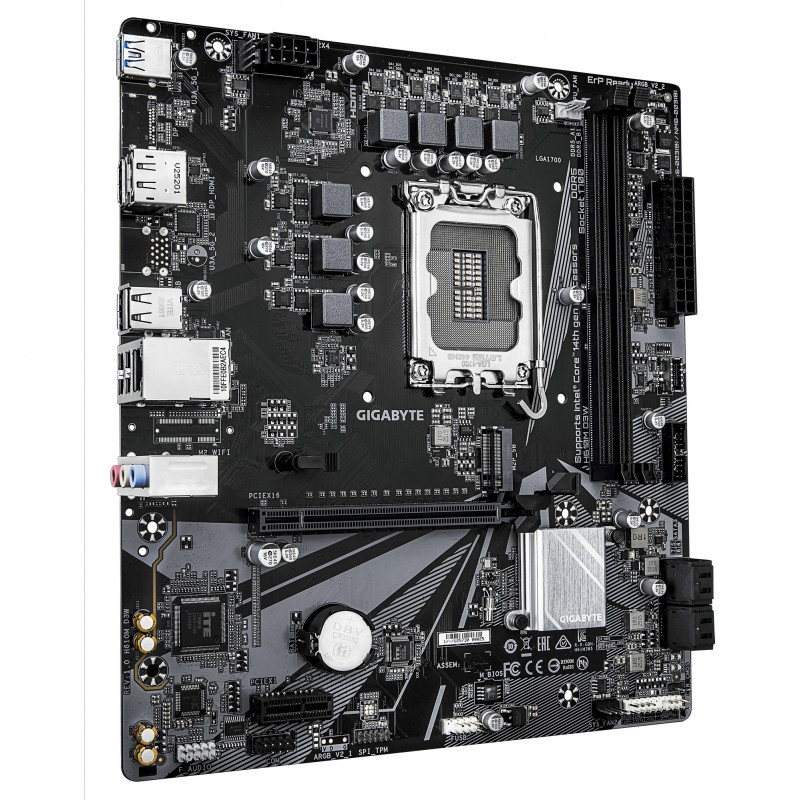 "GIGABYTE H610M D3W Motherboard - Supports 14th Gen. Intel Core CPUs, 5+1+1 phases VRM, up to 5600MHz DDR5, 1xPCIe 3.0 M.2, 1GbE LAN, USB 3.2 Gen 1. Processor manufacturer: Intel, Processor socket: LGA 1700, Compatible processor series: Intel® Celeron®, Intel Core i3 12th Gen, Intel Core i3 13th Gen, Intel Core i3 14th Gen, Intel.... Supported memory types: DDR5-SDRAM, Maximum internal memory: 128 GB, Memory slots type: DIMM. Supported storage drive interfaces: M.2, PCI Express 3.0, SATA III, Supported storage drive types: HDD & SSD. Maximum resolution: 4096 x 2160 pixels. Ethernet interface type: Gigabit Ethernet, LAN controller: Realtek RTL8111H"\n"Elevate your computing experience with GIGABYTE's renowned motherboard series: AORUS, AERO, and GIGABYTE. Featuring innovative designs and advanced features, these boards offer exceptional performance and reliability. Whether you're a gamer, content creator, or professional, our series cater to your needs, ensuring uncompromising quality and cutting-edge technology."