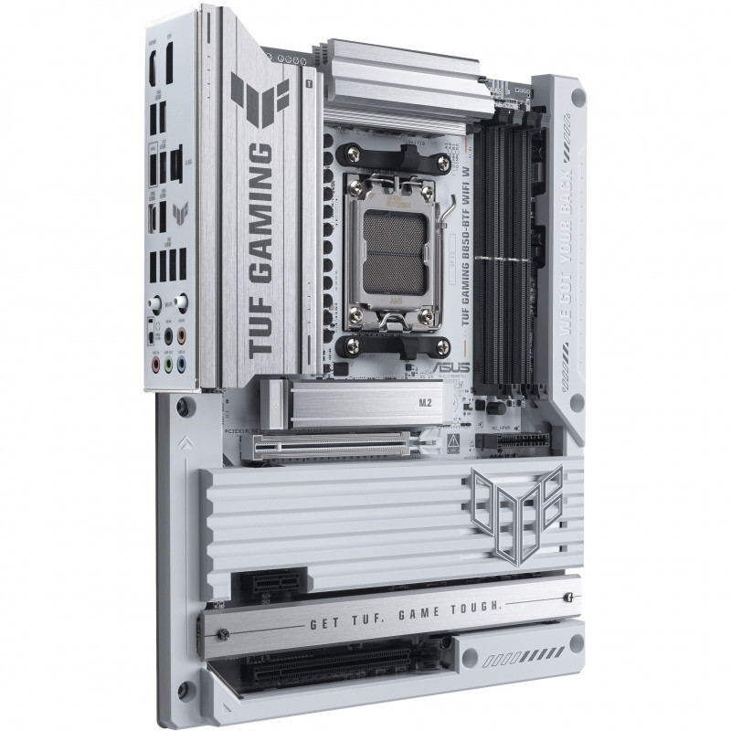 TUF GAMING B850-BTF WIFI W takes all the essential elements of the latest AMD Ryzen™ processors and combines them with game-ready features and proven durability. “BTF” means “Back To (the) Future” for a new era for all PC DIY gamers; the advanced BTF series not only hides all its connectors on the underside of the motherboard, but it also delivers up to 600 watts for BTF graphics cards through a graphics card high-power slot, for clean cable management and a minimalist build appearance. This platform delivers the power and connectivity that advanced AI PC applications demand."