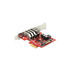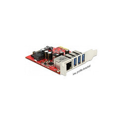 "DeLOCK 89382. Internal. Connectivity technology: Wired, Host interface: PCI Express, Interface: Ethernet. Maximum data transfer rate: 5000 Mbit/s. Product colour: Grey, Red"\n"The Delock PCI Express card expands your PC by three USB 3.0 ports as well as one Gigabit LAN port. You can connect USB devices like e.g. docking station, card reader, external enclosure etc. to the card. The card offers an additional network port with a data transfer rate up to 1000 Mb/s."