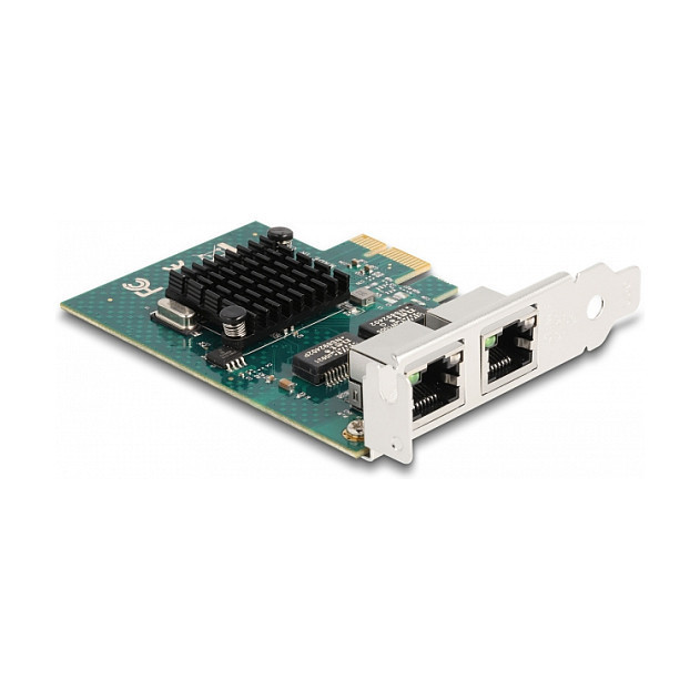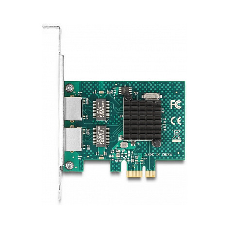 "DeLOCK PCI Express x1 Card to 2 x RJ45 Gigabit LAN BCM. Host interface: PCIe, Output interface: RJ-45, Host interface gender: Female. Product colour: Grey, Purpose: PC, LED indicators: Activity, Link. Data transfer rate (max): 4 Gbit/s. Windows operating systems supported: Windows 10, Windows 10 x64, Windows 11. Quantity per pack: 1 pc(s), Package type: Box"\n"The PCI Express card by Delock offers two network ports with a data transfer rate up to 1000 Mbps.