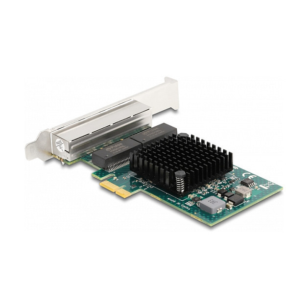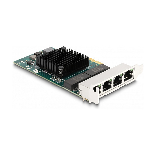 "DeLOCK PCI Express x1 Card to 4 x RJ45 Gigabit LAN BCM. Host interface: PCIe, Output interface: RJ-45, Host interface gender: Female. Product colour: Grey, Purpose: PC, LED indicators: Activity, Link. Data transfer rate (max): 4 Gbit/s. Windows operating systems supported: Windows 10, Windows 10 x64, Windows 11. Quantity per pack: 1 pc(s), Package type: Box"\n"The PCI Express card by Delock offers four network ports with a data transfer rate up to 1000 Mbps.