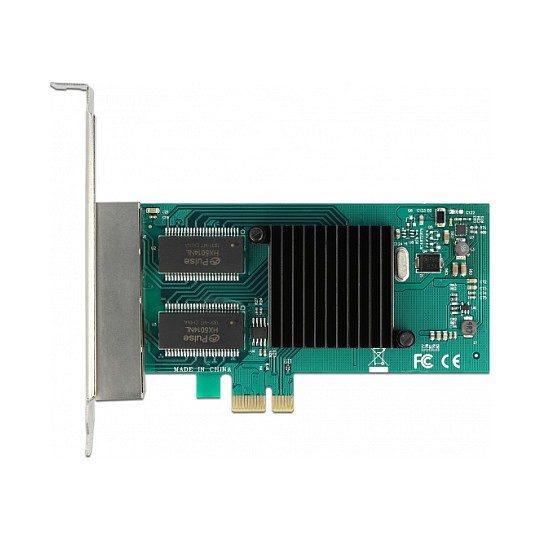 "DeLOCK PCI Express x1 Card 4 x RJ45 Gigabit LAN i350. Internal. Connectivity technology: Wired, Host interface: PCI Express, Interface: Ethernet. Maximum data transfer rate: 4000 Mbit/s"\n"The PCI Express card by Delock offers four network ports with a data transfer rate up to 1000 Mbps."