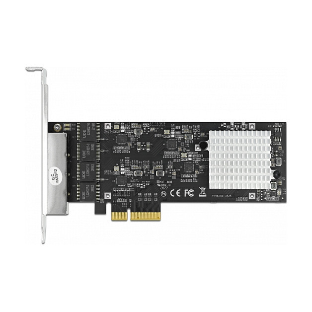The PCI Express card by Delock offers four network ports with a data transfer rate up to 2500 Mbps.