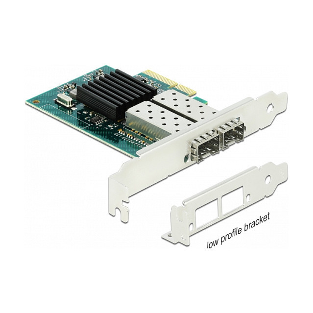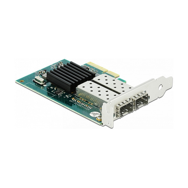 "DeLOCK PCI Express x4 Card 2 x SFP Gigabit LAN i82576. Host interface: PCIe. Data transfer rate (max): 1 Gbit/s. Package type: Box"\n"This PCI Express network card by Delock provides a connection for two SFP modules with a transfer rate of 1 Gbps. The SFP slots accept optional Gigabit SFP modules by Delock to connect a PC via a fiber optic cable to the network."