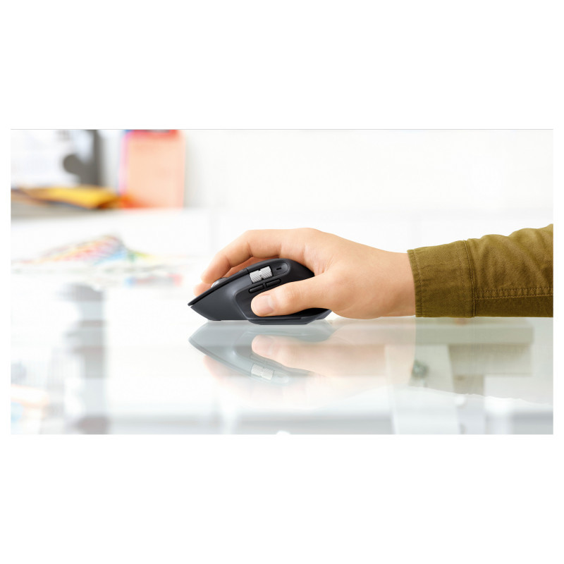 "Logitech MX Master 3S. Form factor: Right-hand. Device interface: RF Wireless + Bluetooth, Movement resolution: 8000 DPI, Buttons type: Pressed buttons, Buttons quantity: 7, Scroll type: Wheel. Power source: Batteries. Works on any surface. Product colour: Graphite"\n
