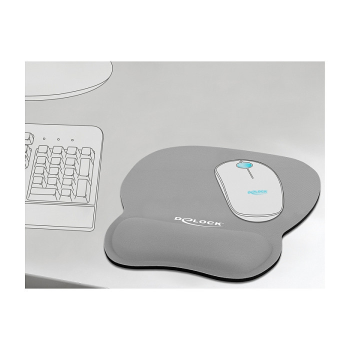 "DeLOCK 12698. Width: 206 mm, Depth: 245 mm. Product colour: Grey, Surface coloration: Monochromatic, Wrist rest"\n"This ergonomical designed soft mouse pad by Delock acts due to its wrist rest relieving when working with a mouse. With its smooth filling the ball of the hand lays comfortable on the mouse pad."